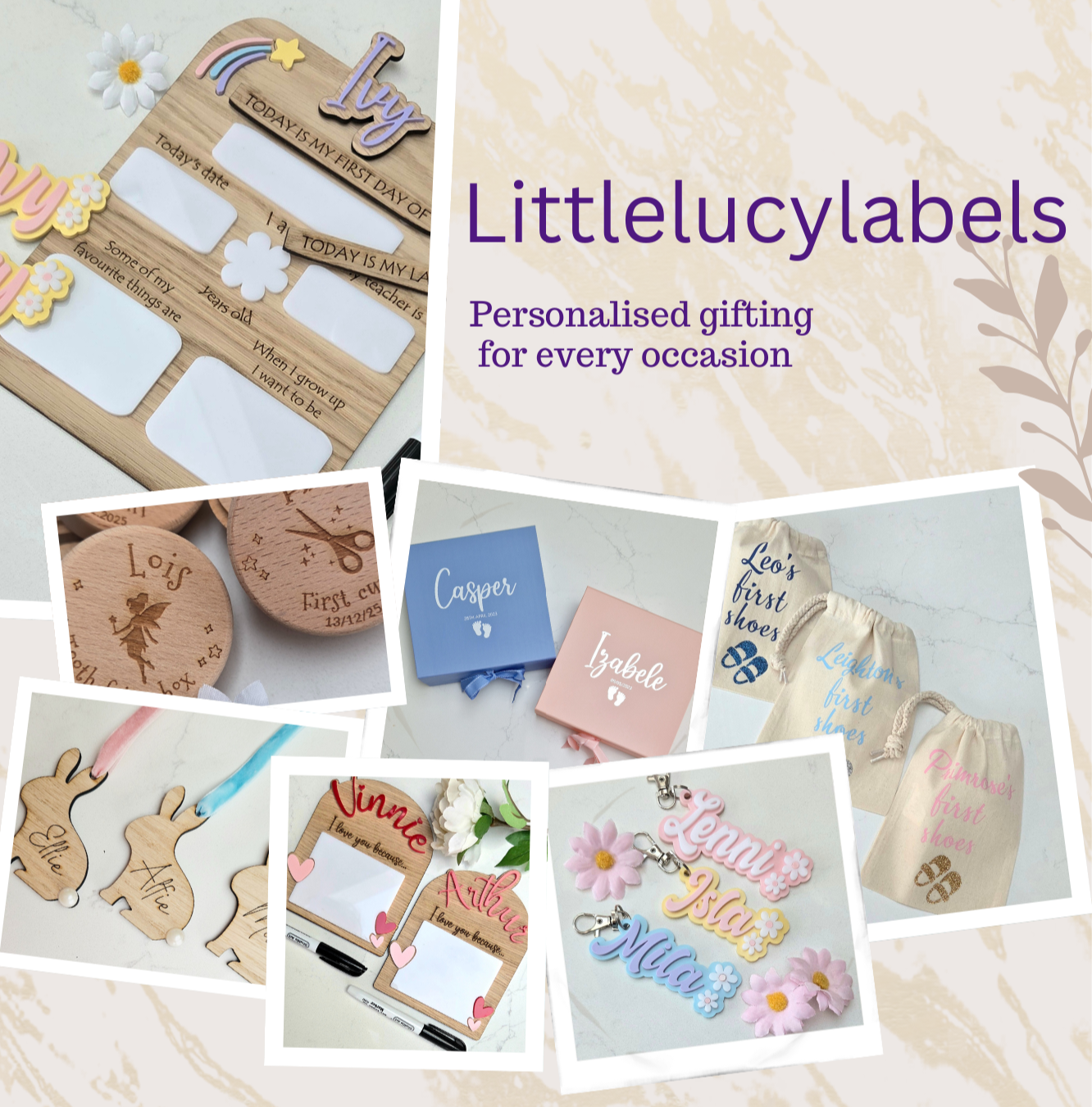 Personalised floral detail bag charm / Personalised name keyring